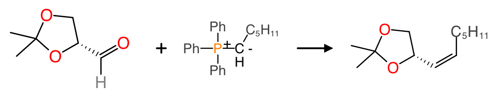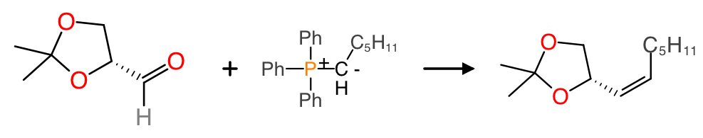 In this classical organic chemisty reaction, the phenyl groups of the Wittig reagent are abbreviated as Ph, and the unreactive alkyl chain is abbreviated as a molecular formula, because these groups are inert and not particularly exciting; the part that really matters is the reaction transform.
