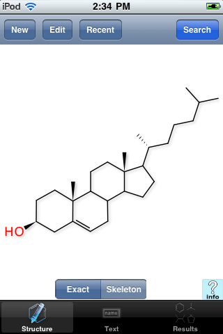 Pressing the Search button will initiate the search for the structure of cholesterol.
