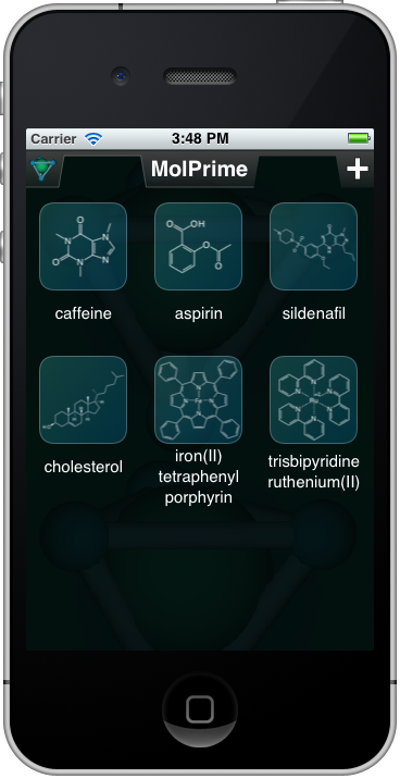 The “+” version provides all the features of the original MolPrime app, with an overhauled user interface, new cover art, updated sketching features, new property calculations, and no advertising… all for the price of $1. For more information, see the introductory article, or go straight to the AppStore.
