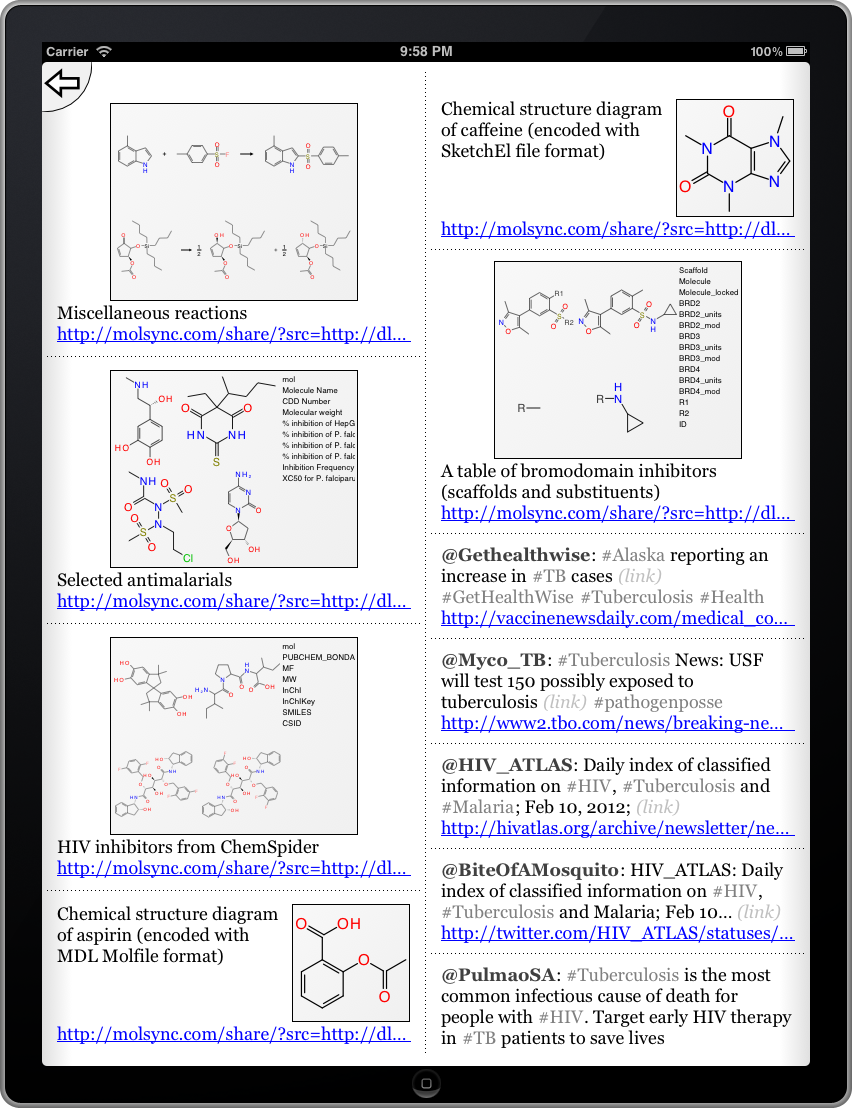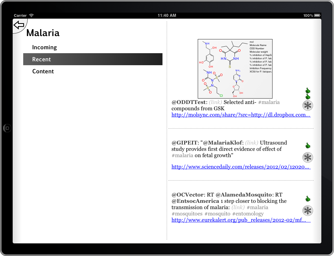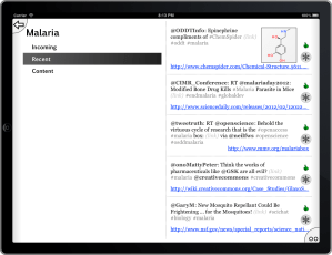 The alpha stage prototype of the Open Drug Discovery Teams (ODDT) app proceeds. Since the last snapshot, a couple of extra buttons have been added to the main page, as can be seen by the graphic on the right (which also demonstrates that this is not just an iPad app, it is designed to work on iPhones/iPods as well). Continue reading