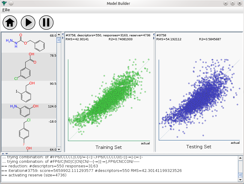 To enhance the capabilities of apps, one of the main side projects that I’ve been working on in between other major distractions is a framework for building and applying models that correlate chemical structure with physical properties or biological activities. The ability to apply a model, and even better to build one then make use of it, has been introduced to the SAR Table app. The underlying machinery for that particular feature is not very friendly toward larger datasets (where large means more than about a hundred compounds in this context), but there has been considerable progress in that regard, which happened to involve creating a more conventional desktop user interface, shown above. Continue reading
