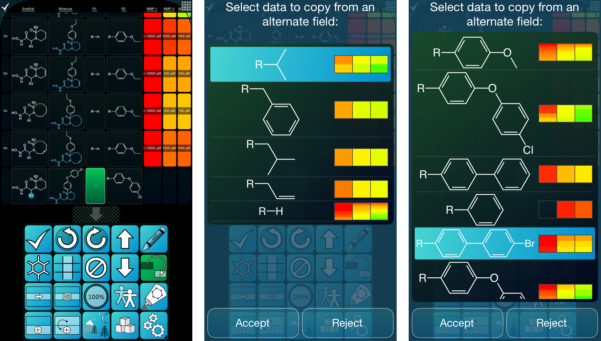 The SAR Table app is undergoing a number of enhancements to make it more suited for planning new compounds based on existing structure-activity relationships. A lot of this has to do with property prediction, model building and scaffold searching of public databases. One of the features slated for the next update is a bit more down to earth: presenting a indication of activities when selecting scaffolds or substituents for reuse. Continue reading