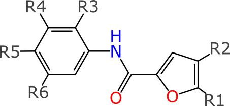 - If there is more than one distinct set of R-group fragment values, they are scored according to how well each set matches existing fragments, e.g. in this example one match might yield two possibilities, such as R4=phenyl,R6=chloro or R4=chloro,R6=phenyl; if there was already a case where R4=phenyl, that might serve as a tiebreaker to bias the selection.