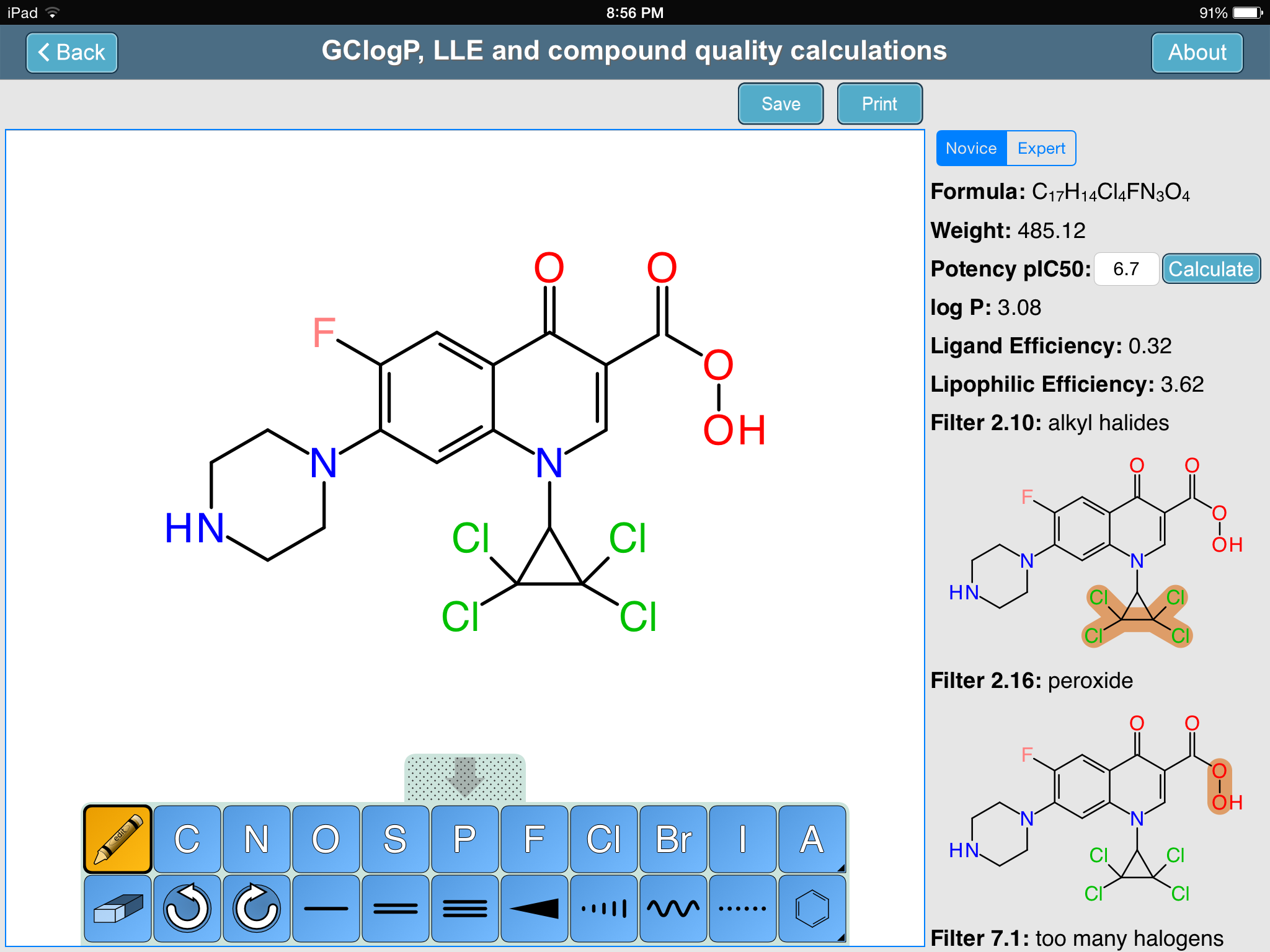 Medicinal Chemistry Toolkit app, now with structures and calculations