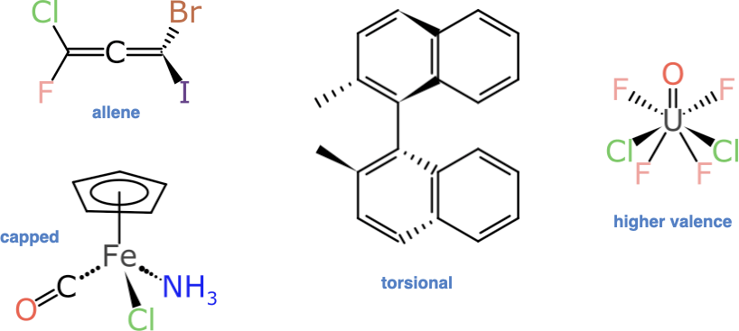 Some of these are harder than others to identify and process, but fortunately the 4-, 5- and 6-coordinate atom-centred stereocentres make up most of the additional demand: