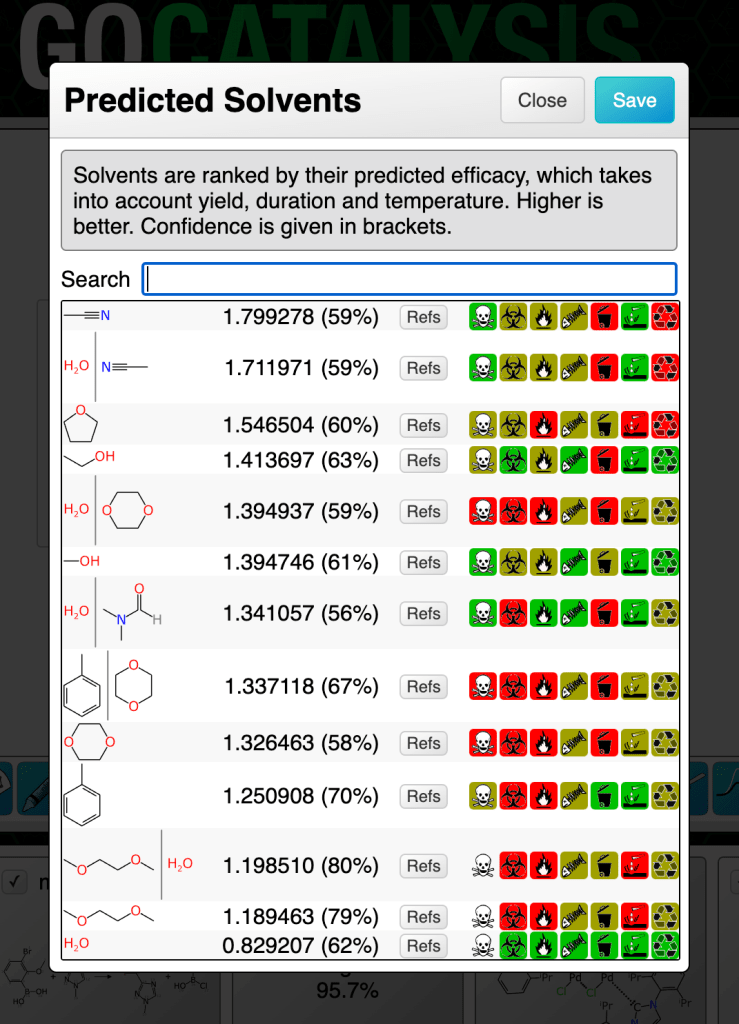 Prediction models for proposing and ranking catalysts and solvents are all very well, but some predictions are more reliable than others. Coming up with some kind of metric for evaluating the difference is a major improvement to utility.