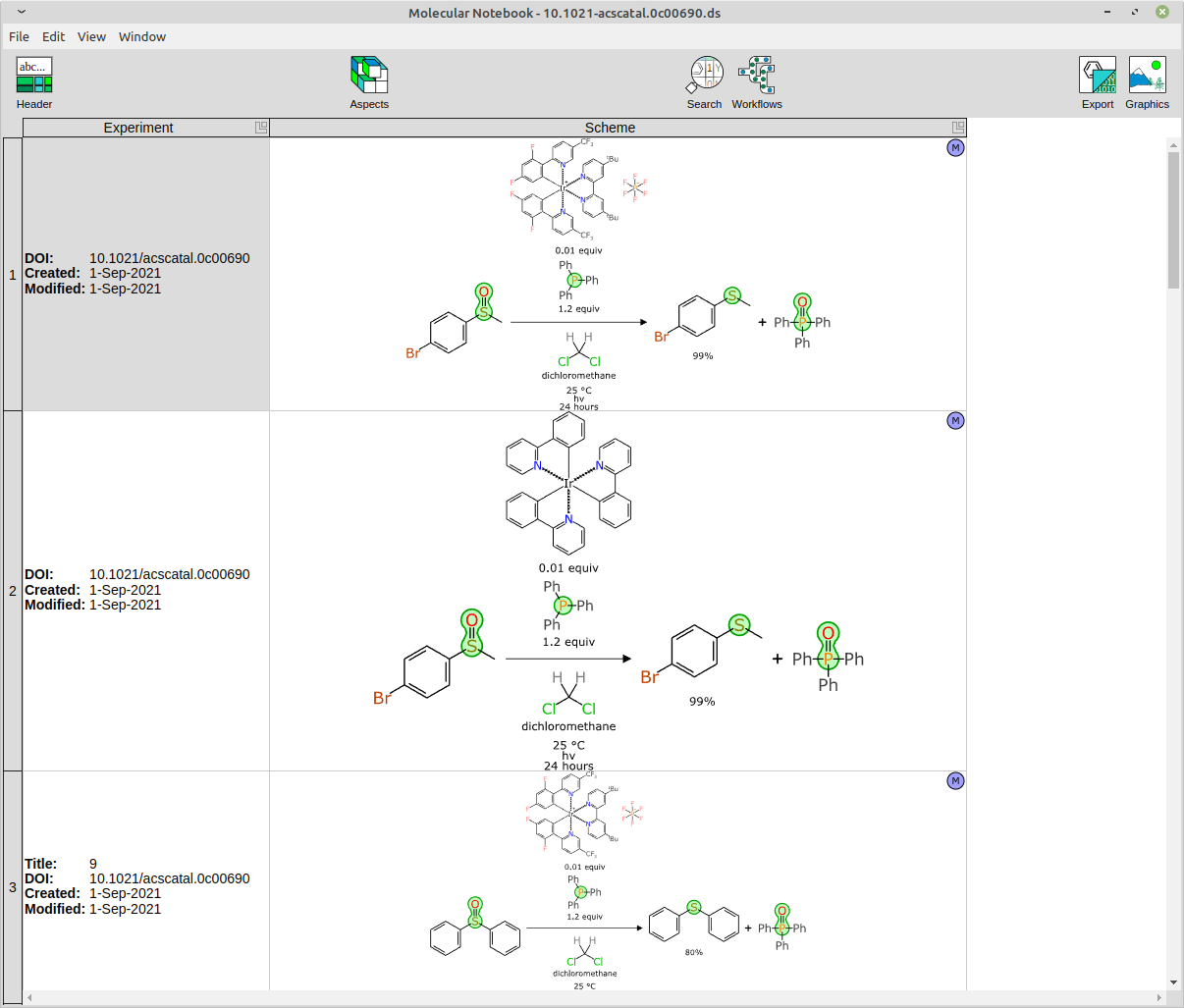 - the second entry has a vertical bar separating two structures: this is the notation used when the catalyst is actually a precatalyst + ligand combination, which is very common