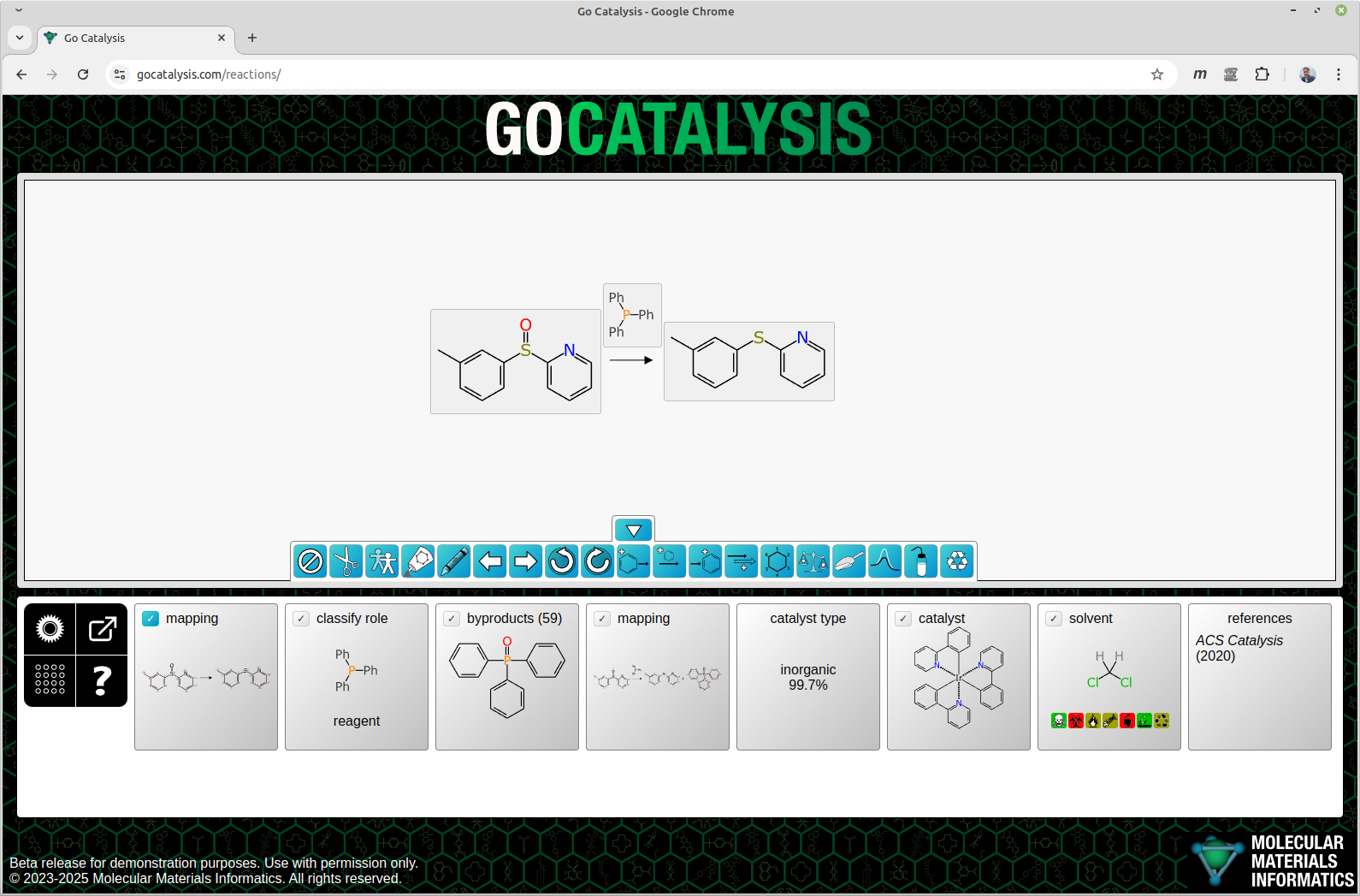- reactants, reagents and products, all mapped and balanced
