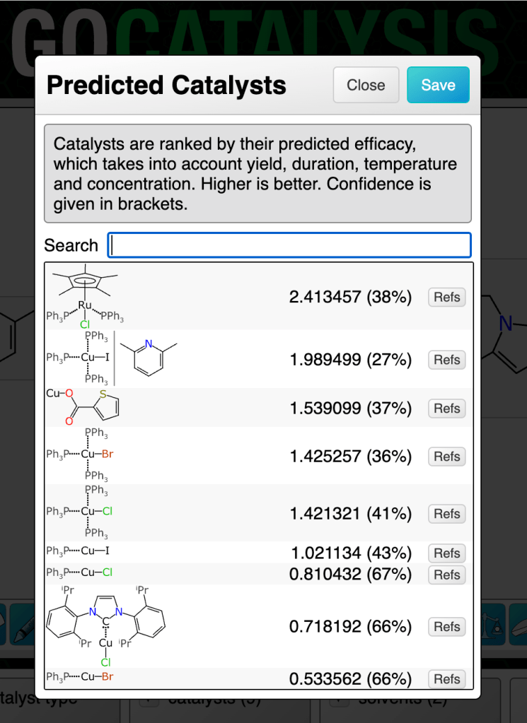 That’s the catalyst prediction in a nutshell. The next article describes prediction of solvents, which follows a very similar pattern.
