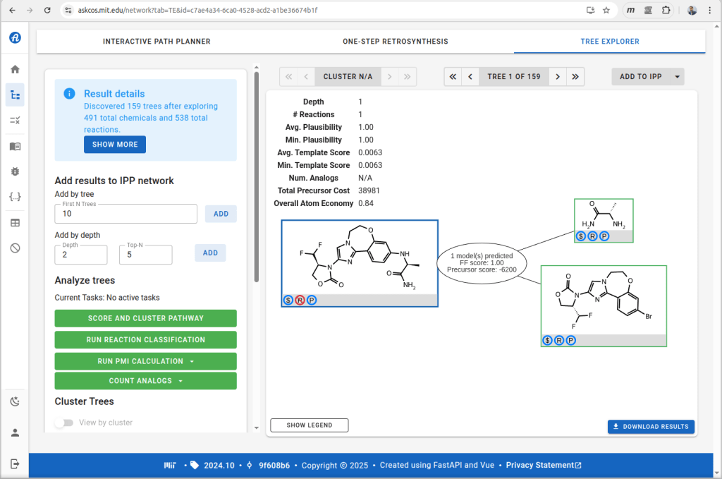 Feeding this into the reaction planning feature for ASKCOS gives the following result: